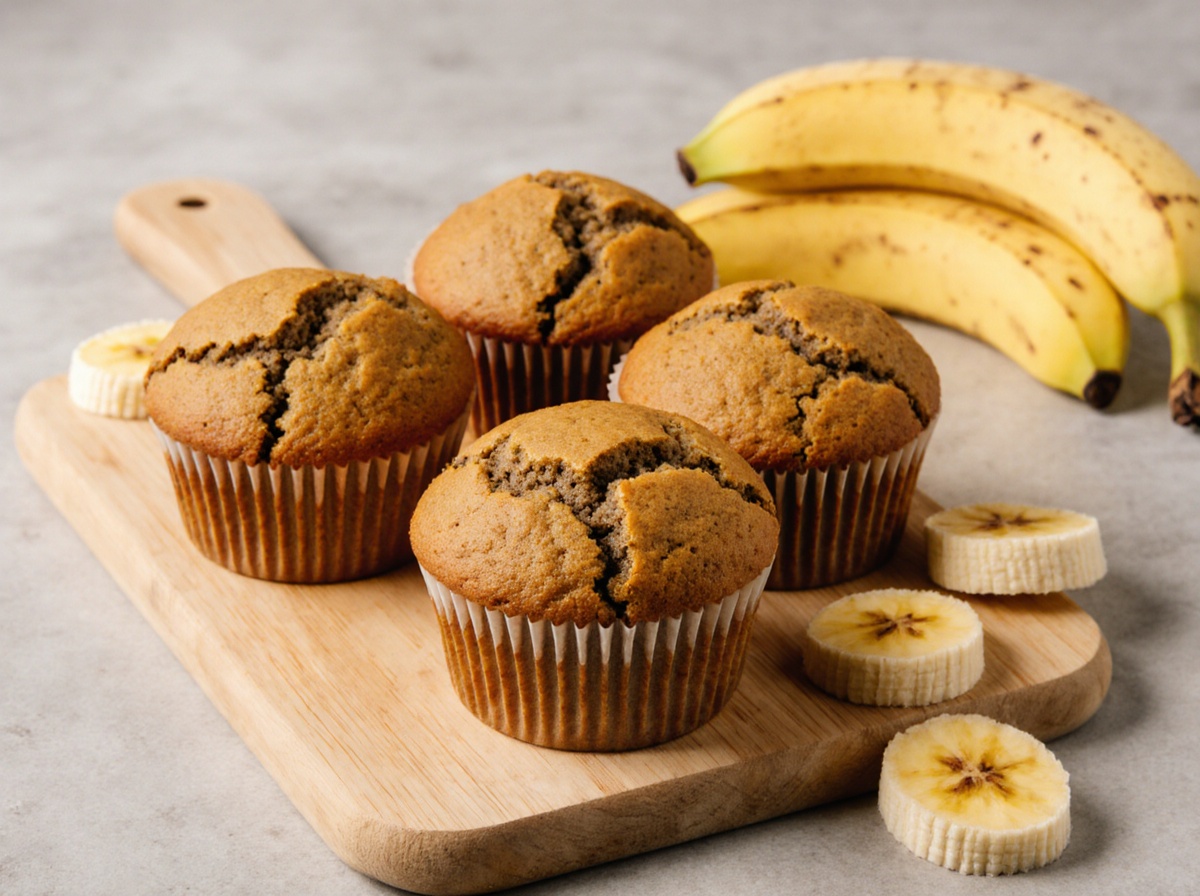 Ich benutze immer eine große Rührschüssel, eine Gabel zum Zerdrücken der Bananen, eine Küchenwaage, und natürlich meinen geliebten Airfryer. Außerdem sind Muffinförmchen oder eine Muffinform unerlässlich. Und, ganz wichtig, ein bisschen Geduld – auch wenn das bei uns manchmal etwas herausfordernd ist, besonders wenn der Duft in der Luft liegt!